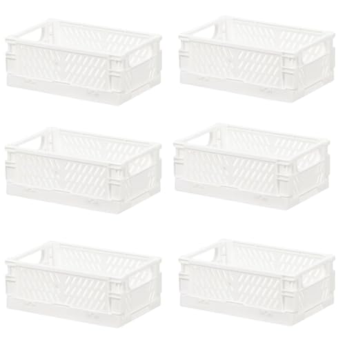 CNKHDZ 6 delar Fällbar låda,Vit 15×10×5.8cm hopfällbara lådor förvaringslådor i plast, förvaringskorgar med handtag, stapelbara förvaringslådor för hyllor, skrivbord, badrum, hemorganisering