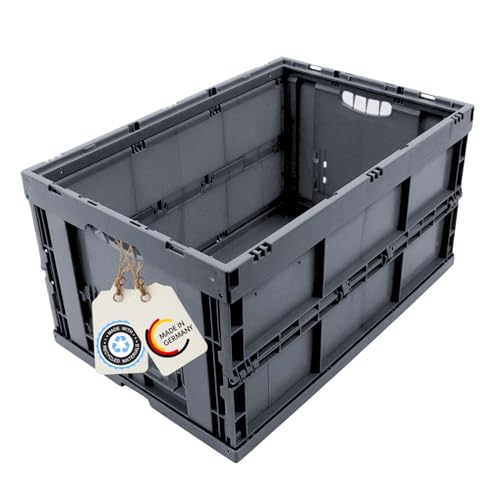 KLAPPBOX 61 liter, stabil viklåda, tillverkad i Tyskland, 60x40x32cm, transportlåda av plast, plastlåda, transportlåda, max. 60 kg, grå