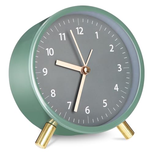TIDEVAN Analog Väckarklocka Utan Tickande, Ljudlös Klassisk Larmklocka med Ljus Grön Radioväckarklocka Orbicular