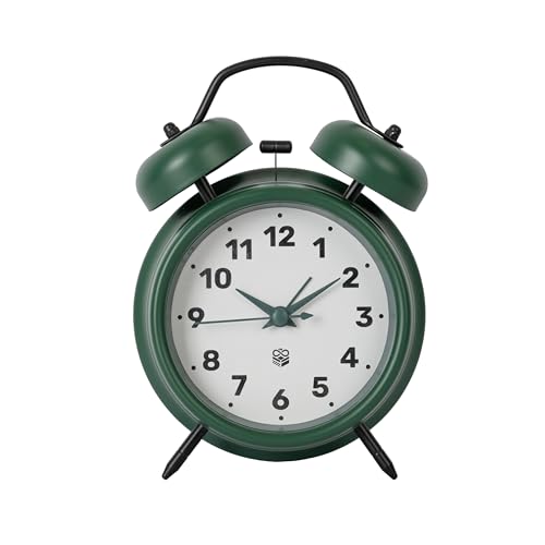GIFTMARKET – Tyst analog väckarklocka i mörkgrönt med dubbelklocka och nattlampa. Klassisk retro väckarklocka utan tickande ljud, 11,7 x 16 cm, perfekt som present eller för hemmet.