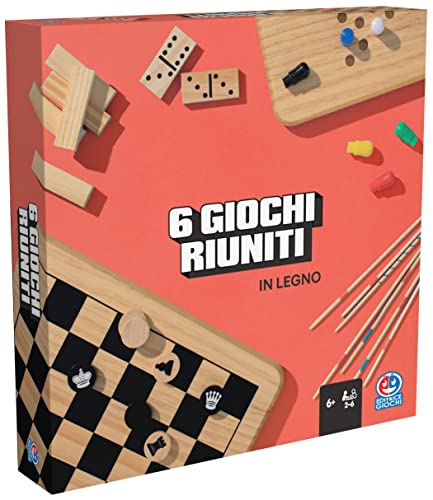 Spin Master Spelutgivare, set med 6 klassiska brädspel i trä för hela familjen. Kinesiska Dama, Domino, Schack och Dame, Shangai och Tower. Board Games för 2-6 spelare