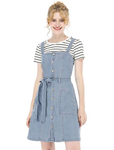 Allegra K Klassiska klänningar med hängslen, justerbara band, pinafore i denim, jeansklänning, Ljusblått, M