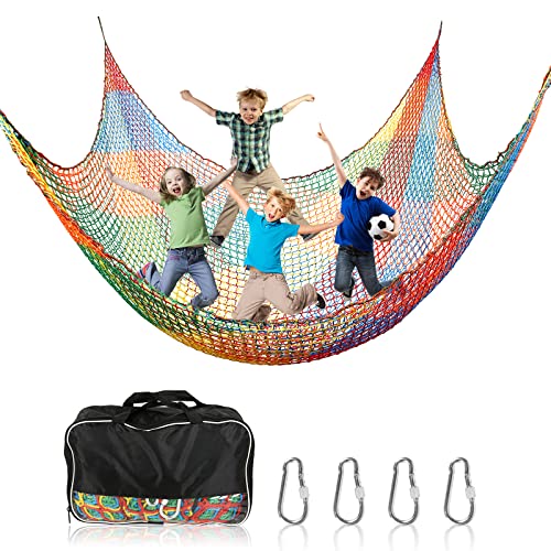 MENAYODA Klättringsnät, lekplats, tung last dubbla lager, skyddsnät för barn, klätterställning, gunga, klättringsnät barn, fallskyddsnät för lekplats, utomhus, inomhus, trädgård (iriserande, 3 x 4,5