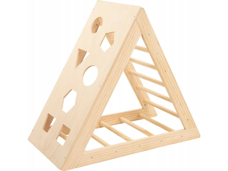 Klättertriangel i trä för barn från 3 år och uppåt för att utveckla motoriken i naturlig furu 93x46x81cm