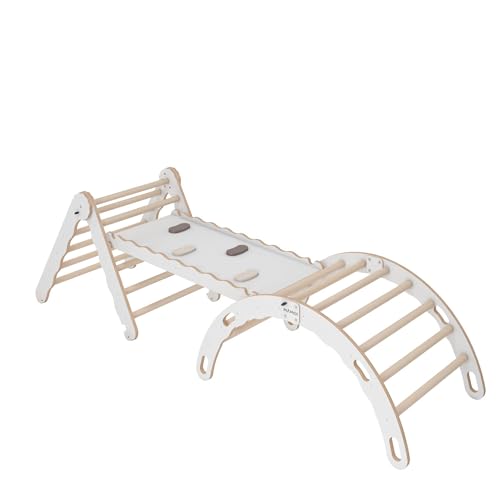 MAMOI® Set klätterställning inomhus, klättertriangel med rutschkana av trä, klätterbåge, baby barn, klättring, klätterställning med rutschbräda, träbåge för lekplats från 1/2/3 år, Montessori