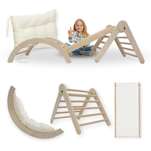 MAMOI Klätterställning klättertriangel inomhus 4-i-1-set. Montessori Klätterbåge med kudde, inomhus lekplats