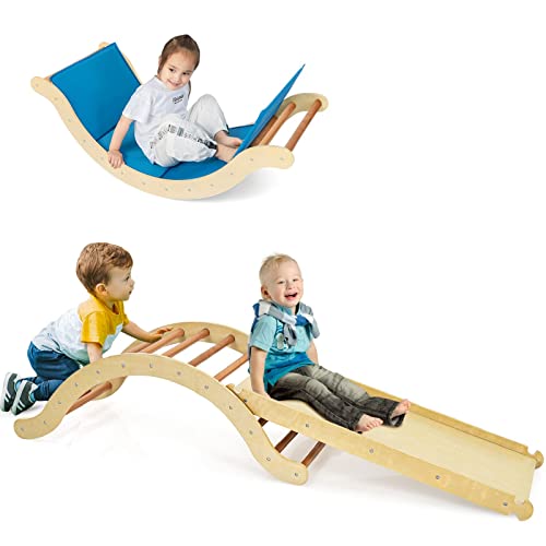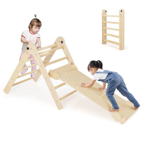 GOPLUS Triangulär klätterstege med ramp, klättertriangel med 2-i-1 vridbar ramp, klätterställning för småbarn för att klättra och glida, lekplats för barnkammare, dagis (natur)