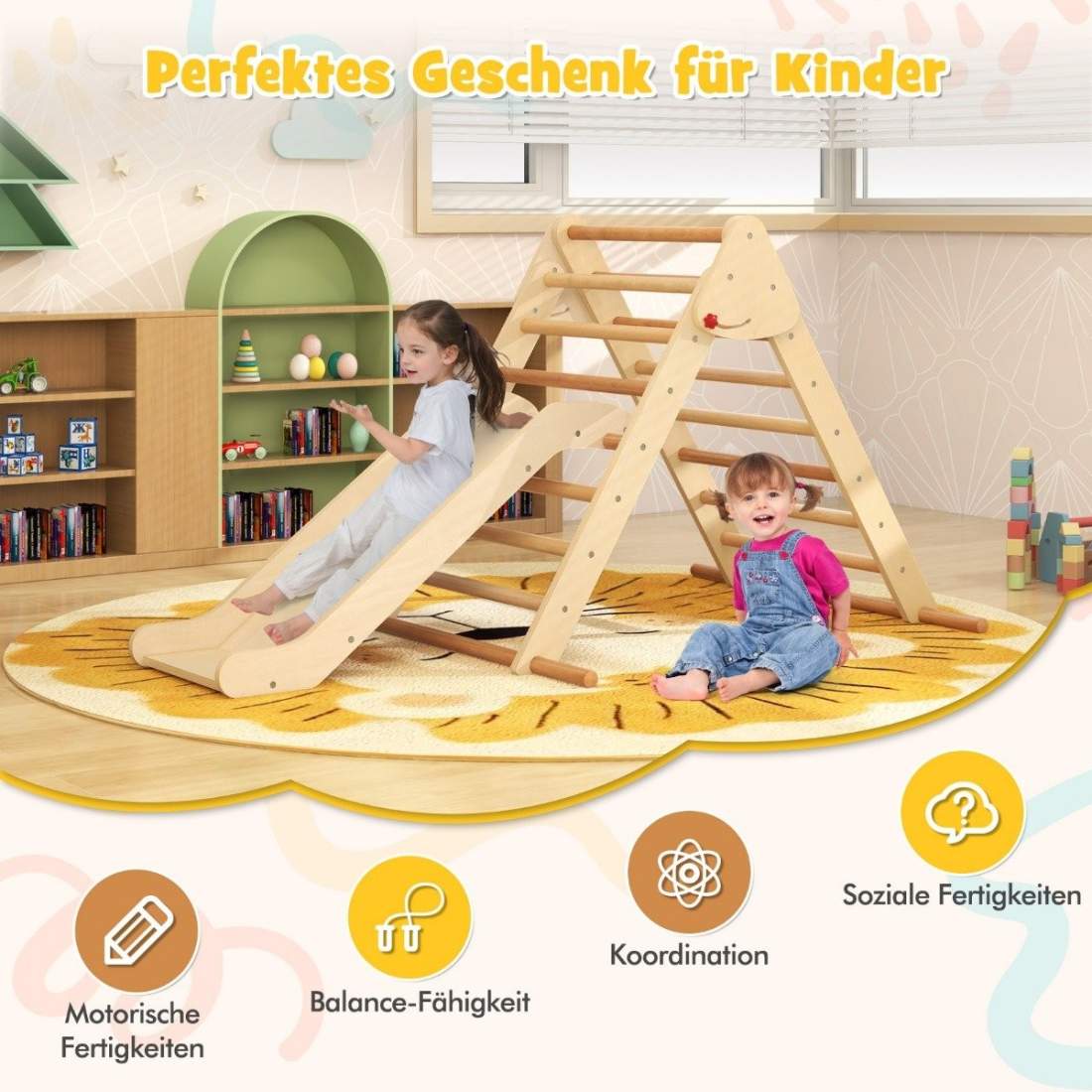 Costway klätterställning för inomhusbruk, klättertriangel med rutschkana, gör-det-själv-klätterstege, konvertibel inomhuslekplats, multifunktionell inomhuslekplats för barn från 3 år