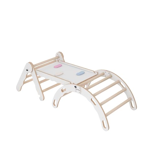 NUKied Klättertriangel med rutschkana, vikbar klätterställning i trä, inomhusset, småbarn, träklättertrekant med skjutlampa, klätterställning för barn, klättertriangel med rutschkana för barn på 1–6