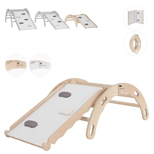 MAMOI® Klätterbåge med rutschkana, klättertriangel, babyklättring, regnbågsvippa av trä, träbåge för barn, halkbräda för lekplats, klätterställning inomhus från 1 år 2/3 år, Montessori