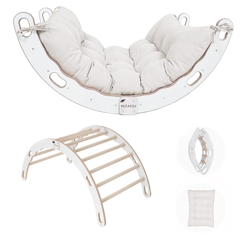 MAMOI® Klättringstriangel gunga med kudde, kudde för klättertriangel för barn i trä, inomhus- och utomhustriangel, barnklättring, babygunga, barnribbstol