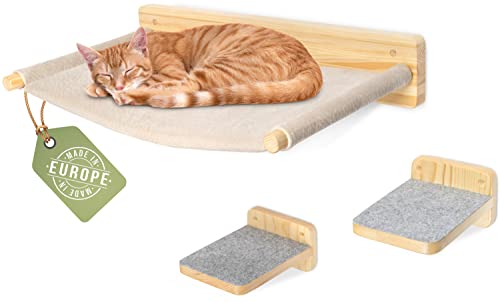 WOOWOOD® Klättervägg katter inkl. 2 x kattrappa, vägg [massivt trä] I klösträd vägg I hängmatta katt I kattvägg I väggklösträd I kattmöbel I katt klättervägg