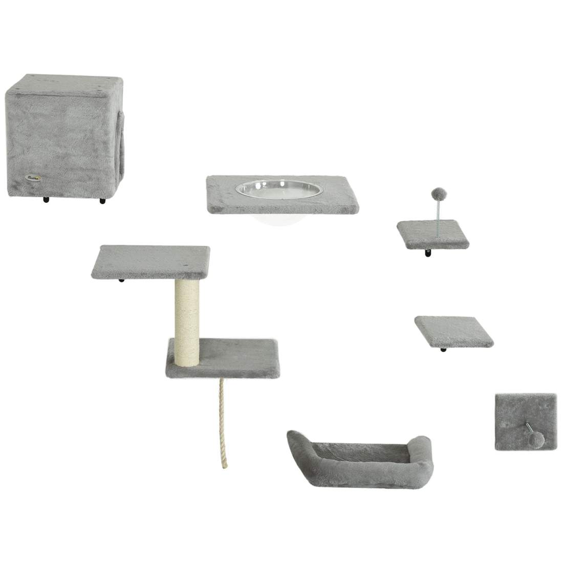 Klättervägg för katter 7-delad kattklätterväggssats med katthus, plattform, plattform grå
