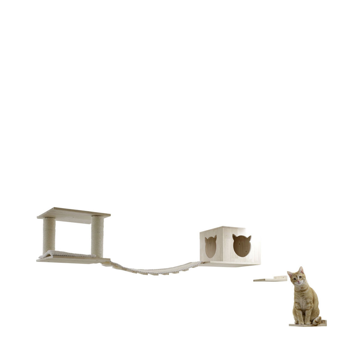 Väggmonterad klättervägg för katter med hängbro