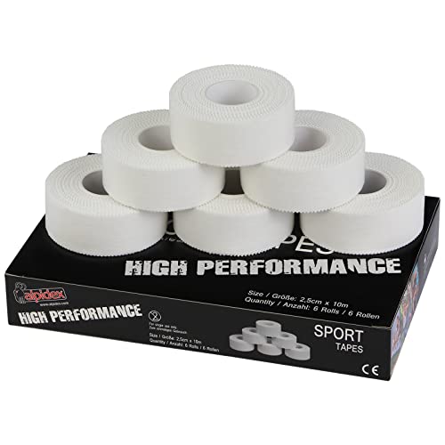 ALPIDEX 6 Rullar Fingertejp 2,5 cm x 10 m Sport Tape Set Tejp Vit Klättring Sportband Hudvänligt