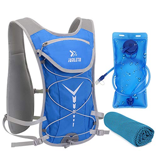 Geila Hydrationsryggsäck med blåsa 2 l, hydreringsväst andningsbar lätt ryggsäck utomhus sport maratoner löpning väst ryggsäck för cykling löpning klättring vandring camping (blått set)