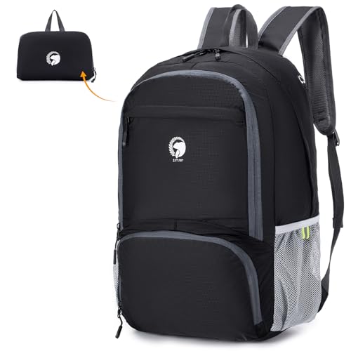 flintronic Ultralätt vikbar liten ryggsäck, lätt vandringsryggsäck, unisex dagryggsäck utomhus, vattentät vandringsryggsäck för camping vandring resor sport klättring cykling (svart), 30l grå