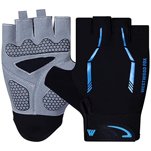 Cykelhandskar Halvfinger Unisex Vadderade grepp Handflata Cykel Sommar Ridning MTB Cykelhandskar Halkfria Fingerlösa Korta Mountainbike Ride Herr Sport Vandringsvantar Klättring (Blue, Large)