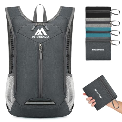 flintronic Vikbar ryggsäck, ultralätt ryggsäck, 16 L vandringsryggsäck, unisex packbar ryggsäck för män kvinnor, vattentät reseryggsäck för utomhus sport cykling vandring klättring, Stil 2 – mörkgrå