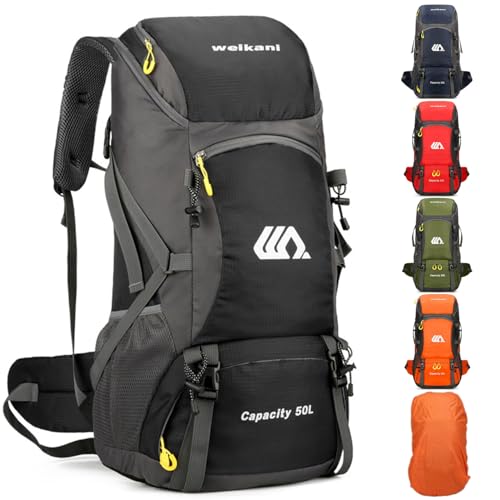HOMIEE 50–60 l vandringsryggsäck, trekkingväska med regnskydd, stor multifunktionell ryggsäck för bergsklättring, klättring, vandring, sport, resor, camping