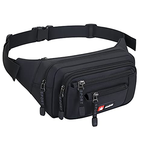 AirZyx Bumbag midjeväska för kvinnor män vattentät midjeväska plus size med 6 fickor med dragkedja midjeväska för hundpromenader, klättring, vandring, resor, utomhus, sport, svart, Svart, En storlek,