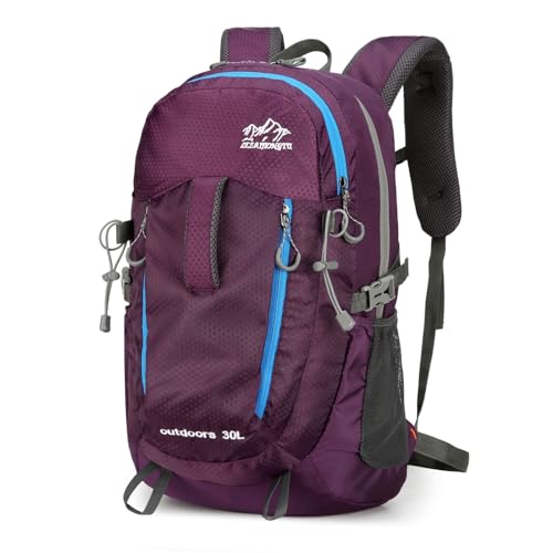 Waniki 30 l vandringsryggsäck män kvinnor reseryggsäck vattentät ryggsäck utomhus vandringsryggsäck lätt stor ryggsäck ryggsäck dagryggsäck för vandring cykling klättring camping sport resor, lila,