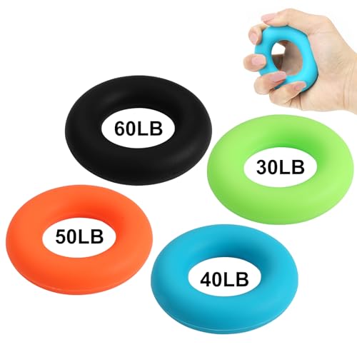 4 stycken styrkor med handtag och tränare, underarm fingerhandtagstränare, silikonringar handträning, grepp styrketräning, silikonringar för muskelträning sport, klättring, bouldering, fitness