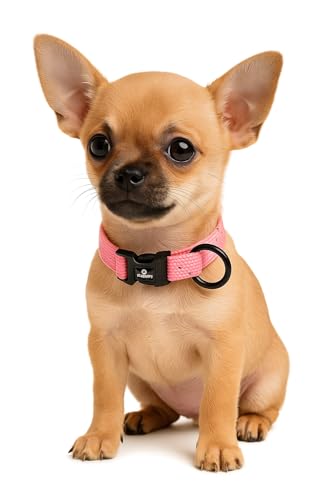 Flamingo valphalsband docka rosa XXS – 15–25 cm 10 mm – med klickspänne och reflekterande remsor