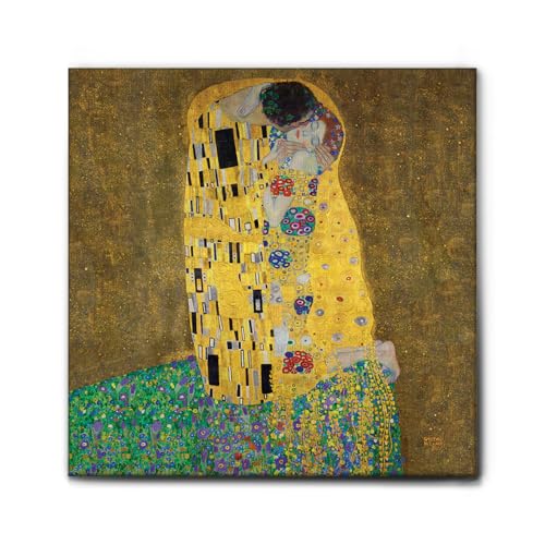 Giallobus - Målning - Gustav Klimt - Kyssen - Hög tjocklek Premium Vävstol Canvas - 100x100 - Redo att hänga - Moderna målningar för hemmet
