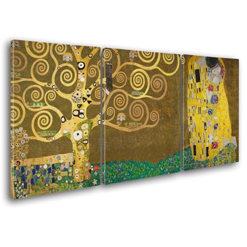 Giallobus - Stora målningar i XXL-format - Gustav Klimt - Kända artister - Kyssen - Standardduk - 218x100cm | 3pcs. x 70x100cm - Moderna tavlor för hemmet