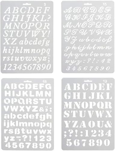 Alfabetsmålning 4 st blandade stilar plastnummer och bokstäver konstnärliga ritningsmallar schablonset för gör-det-själv hantverk journal fotoalbum klippbok schema bok dagbok konstprojekt