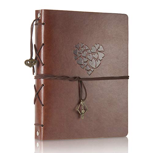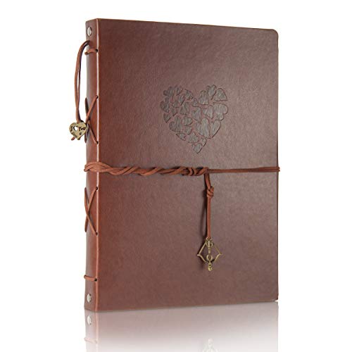 ThxMadam Klippbok eller fotoalbum i vintagestil i läder, gör-det-själv-pyssel, minnesbok, gästbok, med 60 svarta sidor, julklapp eller present till alla hjärtans, årsdag, mors dag, födelsedagspresent till mamma, pappa eller vän (hjärta, stor)