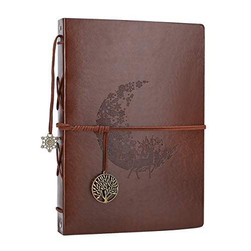 AIOR Album fotoalbum, vintage traditionell klippbok svarta sidor bröllop läder fotobok, original gåva mors dag älskarinna skola kvinna jul alla hjärtans dag födelsedag, månhjort