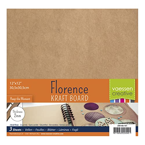 Vaessen Creative 200106-101 Florens spånskiva hantverk 2 mm, set med 3 fyrkantiga ark, 30 x 30 cm, för klippbok eller dagboksskydd, fotoalbum, bröllopsinredning och mer, kraftbrun, 12 x 12