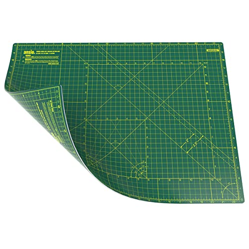 ANSIO Hantverk skärmatta självläkande A2 dubbelsidig 5 lager – quiltning, sömnad, klippbok, tyg och pappersarbete – imperial/metrisk 22,5 tum x 17 tum/59 cm x 44 cm – grön/grön