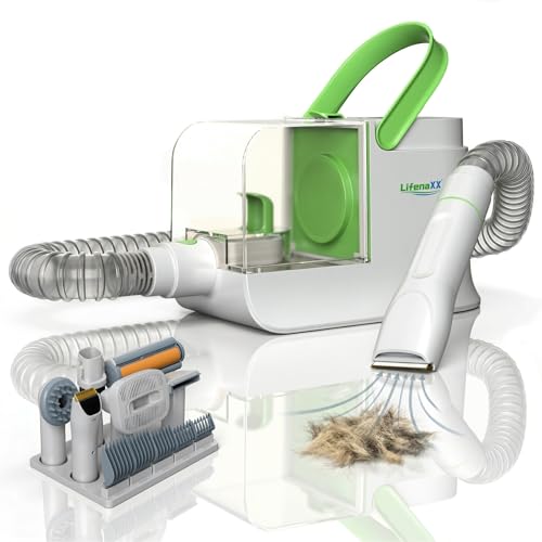 Lifenaxx Pälsvårdsset för Husdjur 6-i-1 med Dammsugarfunktion – Tyst Klippmaskin för Hund & Katt, 6 Kammar, Tovutredare, Massagehuvud, HEPA-filter, 1,5 L Behållare - LX-052