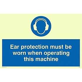 Viking Signs skyltar MP262-A6L-PV"öronskydd måste bäras när du använder denna maskin" skylt, fotoluminescerande klistermärke, 100 mm H x 150