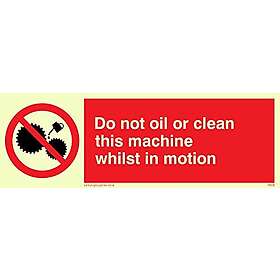 Viking Signs skyltar PM38-L15-PV "Olja inte eller rengöra denna maskin medan den är i rörelse" skylt, foto självlysande klistermärke, 50 mm