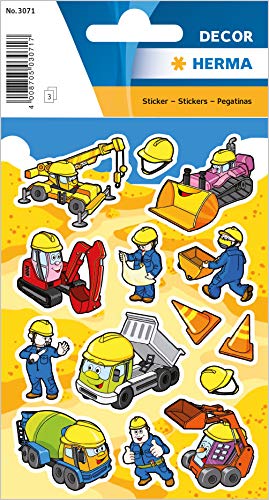 Herma 3071 dekal "byggarbetsplats" av papper, självhäftande klistermärke för pojkar, flickor, småbarn och födelsedagar, 42 trämaskinstickar för barn