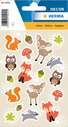 Herma 15041 dekal "skogsdjur" av papper, självhäftande klistermärke för pojkar, flickor, småbarn och födelsedagar, 54 djurklistermärken för barn