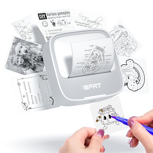 iDPRT Mini bärbara klistermärken skrivare termoskrivare för studier anteckningar bilder gör-det-själv-etiketter med 1 rulle klistermärke papper, studieanteckningar, foton