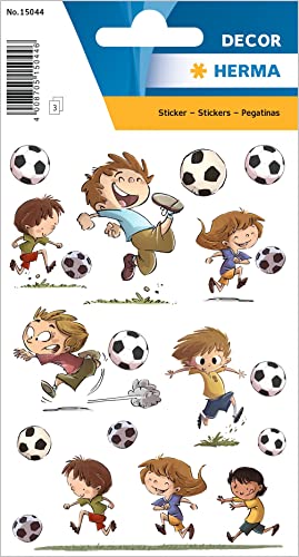 Herma 15044 dekal "Fotbollsfreunde" av papper, självhäftande klistermärke för pojkar, flickor, småbarn och födelsedagar, 27 fotbollsdekal för barn