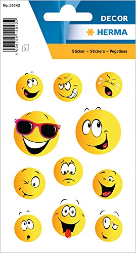 Herma 15042 dekal "Happy Face" av papper, självhäftande klistermärke för pojkar, flickor, småbarn och födelsedagar, 33 Emoji-dekal för barn
