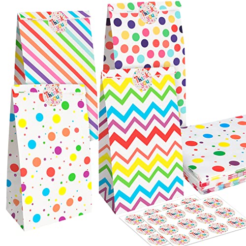 PHOGARY 20 bitar Papper Party Bags för barnfest, regnbågsprickar och randiga färgpåsar med 24 bitar Tack klistermärke för barn födelsedagsfest, Goodie godispåsar till påsk