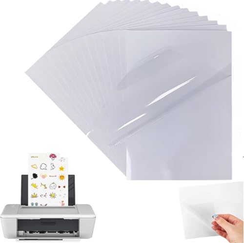 FGGNCBL Klar utskrivbar vinyl för bläckstråleskrivare [85 % klar 15 ark A4 klart klistermärkes papper, transparent och vattenavvisande klistermärkes papper för cricut, självhäftande klistermärke