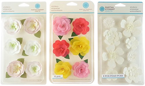 Martha Stewart "vita blommor, rosa papper rosor" blombuketter och ros klistermärke set, papper, flerfärgad