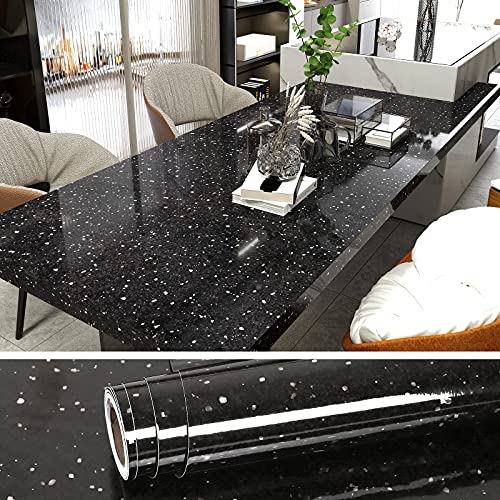 VEELIKE Svart granit marmor klistermärke papper 60cm×900cm Bakgrund Granit Effekt Självhäftande Film för Kök Självhäftande Självhäftande Film Vattentät Möbelklistermärke Bango Vardagsrum Sovrum