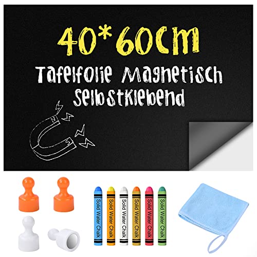 OFFCUP Svarta Tavlan Papper, 40 cm x 60 cm Magnetisk Film, Tjock Självhäftande Tavla Klistermärke, Stor Svart Torr Skrivtavla Med Kritor Och Trasa
