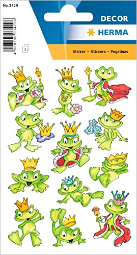 Herma 3429 dekal ”Froschkön” av papper, självhäftande klistermärke för pojkar, flickor, småbarn och födelsedagar, 36 djurklistermärken för barn