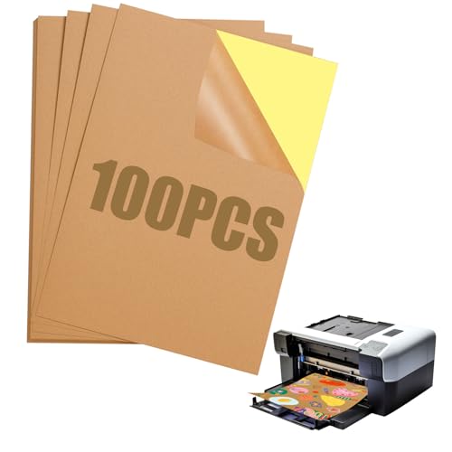 100 ark Karft Paper-klistermärke A4 utskrivbart etikettpapper papper klistermärke för bläckstråleskrivare och laserskrivare (21 x 29,7 cm 70 GSM)
